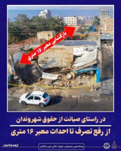 پس از پیگیری و مطالبهگری شهروندان، معبرعمومی تصرفشده در منطقه مرکزی شهر( نزدیک میدان غدیر) با اهتمام مدیریت شهری وبا دستور قضایی رفع تصرف شد.